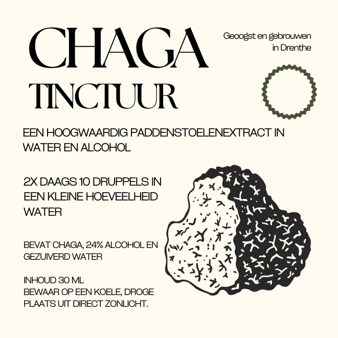 De tinctuurvorm maakt het eenvoudig om chaga op een praktische manier te gebruiken. Door gebruik te maken van alcohol of glycerine als extractiemiddel, worden de karakteristieke bestanddelen van de zwam zorgvuldig geconserveerd. Zo ontstaat een vloeibaar extract dat eenvoudig te doseren is en goed past binnen een natuurlijke dagelijkse routine.